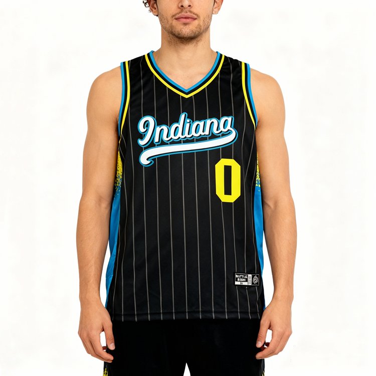We’ve seen it firsthand with pop-up vendors who’ve watched their racks go untouched, and online sellers who’ve returned boxes of limp, mismatched inventory. The demand is out there—what’s missing is a product that hits that emotional spark. This jersey brings the heat: black-on-black pinstripes, electric color blocking, and a retro "Indiana" script that looks straight out of a mixtape highlight reel.